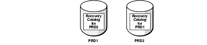 If you have more than one database to back up, then you can create more than one recovery catalog and have each database serve as the other's recovery catalog. For example, assume you maintain two production databases, one called PRD1 and a second called PRD2. You can install the recovery catalog for PRD1 in the PRD2 database, and the recovery catalog for the PRD2 database in PRD1.