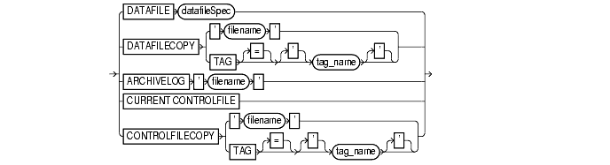 specifies a list of one or more datafiles as input. See "datafileSpec". Note: If you specify a filename, then it must be the name of a current datafile as listed in the control file. |