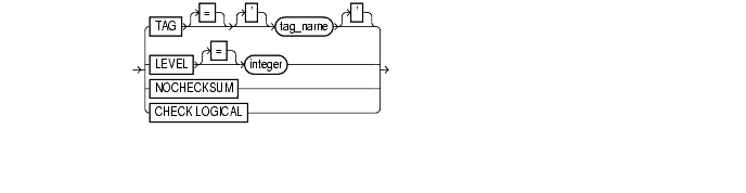 tests data and index blocks that pass physical corruption checks for logical corruption, for example, corruption of a row piece or index entry. If RMAN finds logical corruption, then it logs the block in the Provided the sum of physical and logical corruptions detected for a file remain below its maxcorrupt setting, the RMAN command completes and Oracle populates V$COPY_CORRUPTION with corrupt block ranges. If maxcorrupt is exceeded, then the command terminates without populating the views. Note: For copy and backup the maxcorrupt setting represents the total number of physical and logical corruptions permitted on a file. |