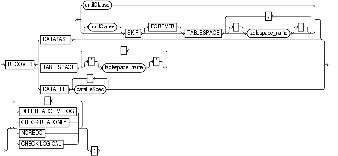 specifies that the entire database is to be recovered. You can specify an optional untilClause that causes the recovery to stop when the specified condition has been reached.