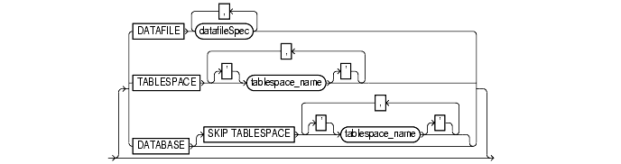 specifies the datafiles to be included in the report. The report can include the entire database (optionally skipping certain tablespaces), a list of tablespaces, or a list of datafiles. |