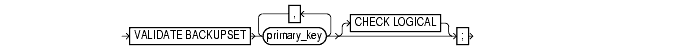 specifies the backup sets to be validated by primary_key. Obtain the primary keys of backup sets by executing a list statement or, if you use a recovery catalog, by querying the RC_BACKUP_SET fixed view.