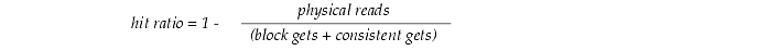 The KEEP buffer pool has a 100% hit ratio only after the buffers have been loaded into the buffer pool. Therefore, do not compute the hit ratio until after the system runs for a while and achieves steady-state performance. Calculate the hit ratio by taking two snapshots of system performance at different times using the above query. Subtract the newest values from the older values for physical reads, block gets, and consistent gets, and use these values to compute the hit ratio.