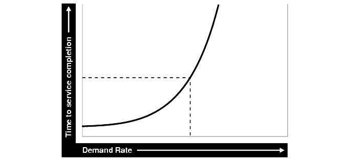 Figure 1-3 shows that as the number of units requested rises, the time to service completion rises.