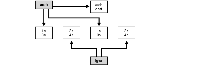 Table 20-6 shows the types of read and write operations performed by each of the background processes, by foreground processes, and by parallel execution servers.