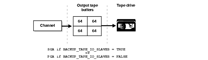 RMAN allocates the tape buffers in the SGA or the PGA. If you set the initialization parameter BACKUP_TAPE_IO_SLAVES = true, then RMAN allocates them from the SGA. If you set the parameter to FALSE, then RMAN allocates the buffers in the PGA.