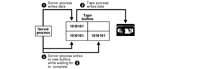Figure 20-8 illustrates asynchronous I/O in a backup to tape. The following steps occur:
