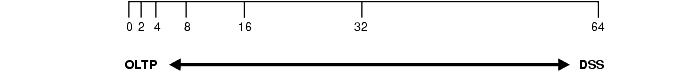Figure 20-1 illustrates the suitability of various block sizes to online transaction processing (OLTP) or decision support (DSS) applications.