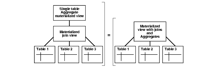 In a data warehouse, you typically create many aggregate views on a single join (for example, rollups along different dimensions). Incrementally maintaining these distinct materialized aggregate views can take a long time because the underlying join has to be performed many times. By using nested materialized views, the join is performed just once (while maintaining the materialized view containing joins only) and incremental maintenance of single-table aggregate materialized views is very fast due to the self-maintenance refresh operations on this class of views. Using nested materialized views also overcomes the limitation posed by materialized aggregate views, where incremental maintenance can only be done with direct-load insert.