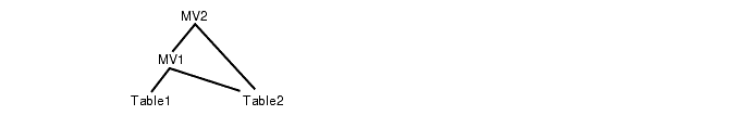 Figure 8-3 is just one of many possible ways to nest materialized views, but it is likely to be the most frequent and practical. Cyclic dependencies (a materialized view that indirectly references itself) are caught at creation time and an error is generated. Some restrictions are placed on the way you can nest materialized views. Oracle allows nesting a materialized view only when all the immediate dependencies of the materialized view do not have any dependencies amongst themselves. Thus, in the dependency tree, a materialized view can never be a parent as well as a grandparent of an object. For example, Figure 8-4, shows an impermissible materialized view because it is both a parent and grandparent of the same object.
