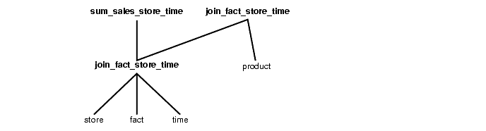 Note that the above single-table aggregate materialized view sum_sales_store_time is logically equivalent to a multi-table aggregate on the tables fact, time, and store whose definition is
