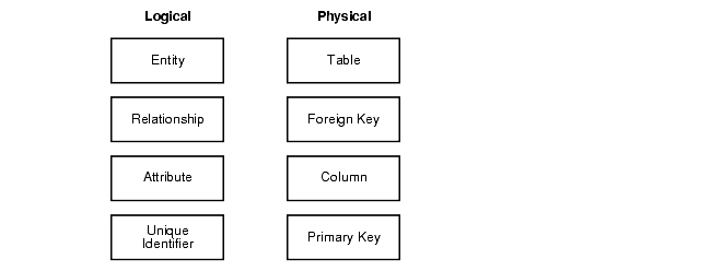 A graphical way of looking at the differences between logical and physical designs is in Figure 3-1: