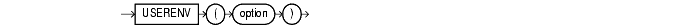 USERENV returns information of VARCHAR2 datatype about the current session. This information can be useful for writing an application-specific audit trail table or for determining the language-specific characters currently used by your session. You cannot use USERENV in the condition of a CHECK constraint. Table 4-2 describes the values for the option argument.