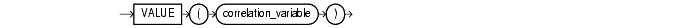 In a SQL statement, VALUE takes as its argument a correlation variable (table alias) associated with a row of an object table and returns object instances stored in the object table. The type of the object instances is the same type as the object table.