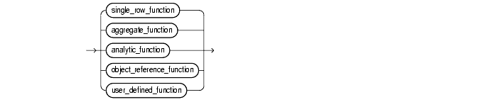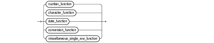 In the syntax diagrams for SQL functions, arguments are indicated by their datatypes. When the parameter "function" appears in SQL syntax, replace it with one of the functions described in this section. Functions are grouped by the datatypes of their arguments and their return values.