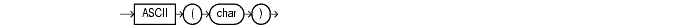 ASCII returns the decimal representation in the database character set of the first character of char. If your database character set is 7-bit ASCII, this function returns an ASCII value. If your database character set is EBCDIC Code, this function returns an EBCDIC value. There is no corresponding EBCDIC character function.