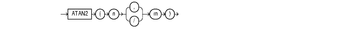 ATAN2 returns the arc tangent of n and m. Inputs are in an unbounded range, and outputs are in the range of -pi to pi, depending on the signs of n and m, and are expressed in radians. ATAN2(n,m) is the same as ATAN2(n/m)