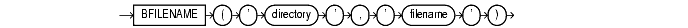 BFILENAME returns a BFILE locator that is associated with a physical LOB binary file on the server's file system. A directory is an alias for a full pathname on the server's file system where the files are actually located, and 'filename' is the name of the file in the server's file system.