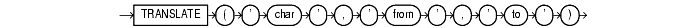 TRANSLATE returns char with all occurrences of each character in from replaced by its corresponding character in to. Characters in char that are not in from are not replaced. The argument from can contain more characters than to. In this case, the extra characters at the end of from have no corresponding characters in to. If these extra characters appear in char, they are removed from the return value. You cannot use an empty string for to to remove all characters in from from the return value. Oracle interprets the empty string as null, and if this function has a null argument, it returns null.