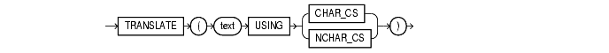 TRANSLATE ... USING converts text into the character set specified for conversions between the database character set and the national character set.