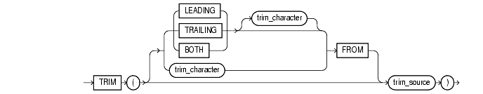 TRIM enables you to trim leading or trailing characters (or both) from a character string. If trim_character or trim_source is a character literal, you must enclose it in single quotes.