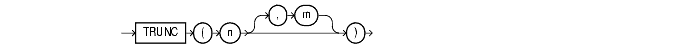 TRUNC returns n truncated to m decimal places. If m is omitted, n is truncated to 0 places. m can be negative to truncate (make zero) m digits left of the decimal point.