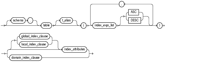 Specify the table (and its attributes) on which you are defining the index. If you do not qualify table with schema, Oracle assumes the table is contained in your own schema.