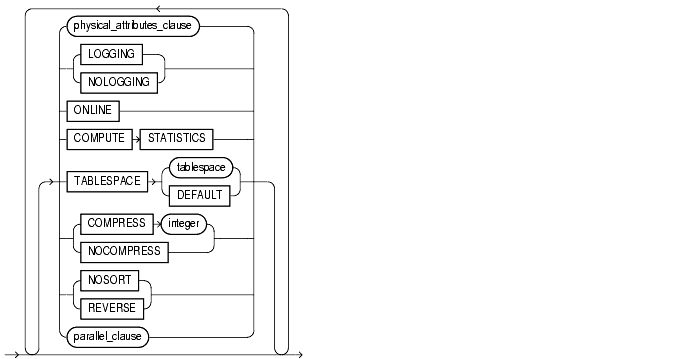 Use the physical_attributes_clause to establish values for physical and storage characteristics for the index. See CREATE TABLE.