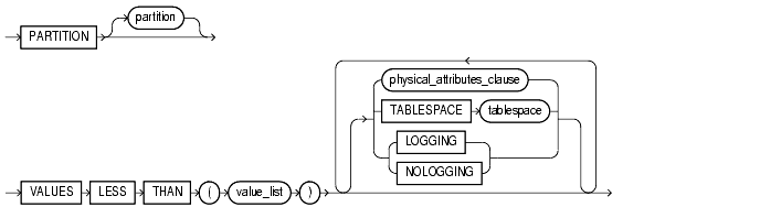 (PARTITION VALUES LESS THAN ('N') TABLESPACE ts3,