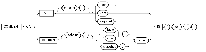 Use the COMMENT statement to add a comment about a table, view, snapshot, or column into the data dictionary.