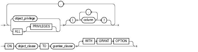 Specify the object privilege you want to grant. You can substitute any of the values shown in Table 11-3. See also Table 11-4. Restriction: A privilege cannot appear more than once in the list of privileges to be granted. |