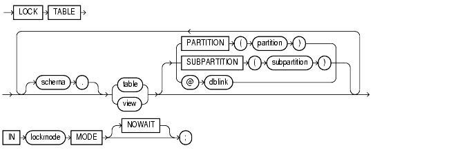 If you specify PARTITION (partition) or SUBPARTITION (subpartition), Oracle first acquires an implicit lock on the table. The table lock is the same as the lock you specify for partition or subpartition, with two exceptions: