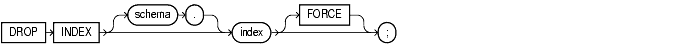 FORCE applies only to domain indexes. This clause drops the domain index even if the indextype routine invocation returns an error or the index is marked LOADING. Without FORCE, you cannot drop a domain index if its indextype routine invocation returns an error or the index is marked LOADING.