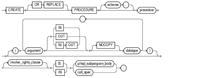 A procedure is a group of PL/SQL statements that you can call by name. A call specification ("call spec") declares a Java method or a third-generation language (3GL) routine so that it can be called from SQL and PL/SQL. The call spec tells Oracle which Java method to invoke when a call is made. It also tells Oracle what type conversions to make for the arguments and return value.