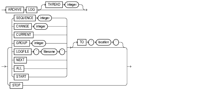 The archive_log_clause manually archives redo log files or enables or disables automatic archiving. To use this clause, your instance must have the database mounted. The database can be either open or closed unless otherwise noted.