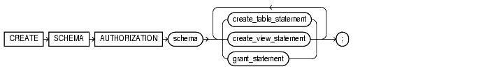Specify a GRANT object_privileges statement to be issued as part of this CREATE SCHEMA statement. Do not end this statement with a semicolon (or other terminator character).