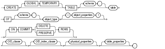 The ON COMMIT clause is relevant only if you are creating a temporary table. This clause specifies whether the data in the temporary table persists for the duration of a transaction or a session.