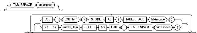 Specify the tablespace in which Oracle creates the table, object table OID index, partition, LOB storage, LOB index segment, or index-organized table overflow data segment. If you omit |