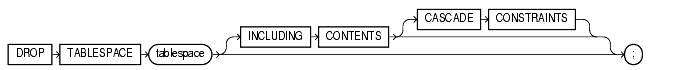 Specify CASCADE CONSTRAINTS to drop all referential integrity constraints from tables outside tablespace that refer to primary and unique keys of tables inside tablespace. If you omit this clause and such referential integrity constraints exist, Oracle returns an error and does not drop the tablespace.