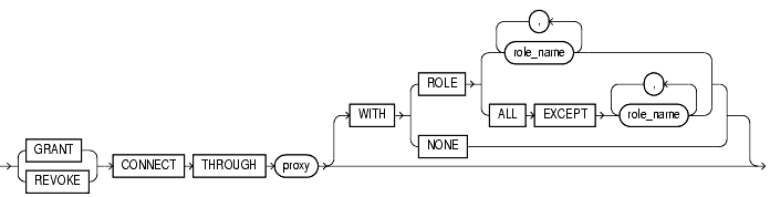 The proxy_clause lets you control the ability of a proxy (an application or application server) to connect as the specified user and to activate all, some, or none of the user's roles.