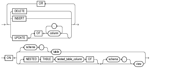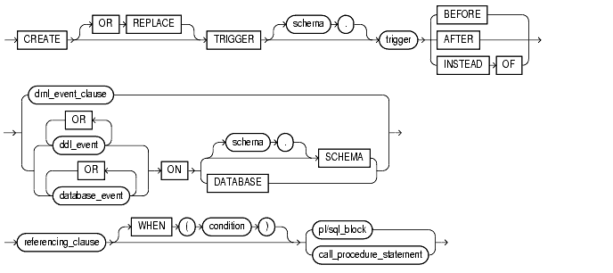 Specify one or more types of DDL statements that can cause the trigger to fire. You can create triggers for these events on DATABASE or SCHEMA unless otherwise noted. You can create BEFORE and AFTER triggers for these events. Oracle fires the trigger in the existing user transaction. The following values are valid: