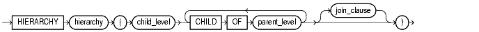 The hierarchy_clause defines a linear hierarchy of levels in the dimension. Each hierarchy forms a chain of parent-child relationships among the levels in the dimension. Hierarchies in a dimension are independent of each other. They may (but need not) have columns in common.