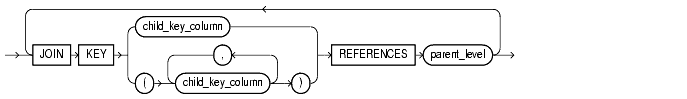The join_clause lets you specify an inner equijoin relationship for a dimension whose columns are contained in multiple tables. This clause is required and permitted only when the columns specified in the hierarchy are not all in the same table.