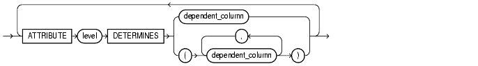 The attribute_clause lets you specify the columns that are uniquely determined by a hierarchy level. The columns in level must all come from the same table as the dependent_columns. The dependent_columns need not have been specified in the level_clause.