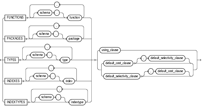 Use the ASSOCIATE STATISTICS statement to associate a statistics type (or default statistics) containing functions relevant to statistics collection, selectivity, or cost with one or more columns, standalone functions, packages, types, domain indexes, or indextypes.
