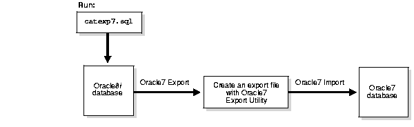 Oracle8i Utilities for more information about performing an Oracle7 export from an Oracle8i database.
