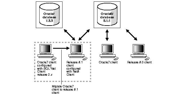 You can migrate some or all of your version 7 clients to release 8.1. You can also migrate your version 7 database to a release 8.1 database or upgrade your release 8.0 database to the current release 8.1 database at a later date.