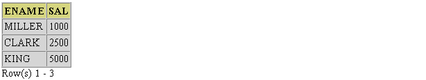 - Compare the salaries of the employees in Department 10 (KING, CLARK, and MILLER) with those that you noted down at the end of the previous exercise. Executing TUTORIAL_PROC has increased them by 5%.