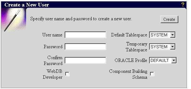 Users who already have a user account in the database can already log on to WebDB using their user name and password. You can use WebDB to create user accounts for new users and to manage existing user accounts, without ever having to leave your Web browser.