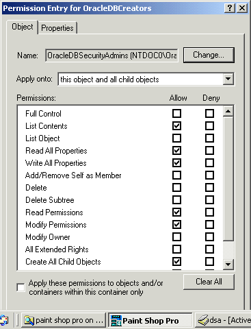 Create an Oracle schema and Oracle Context in Active Directory (if one is not already installed) Set up Access Control Lists for security in Active Directory |